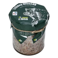 Maso ze zvěřiny 65%,(jelení, daňčí, mufloní, srnčí)vepřové maso 30% jedlá sůl + konzervant E250, směs koření.