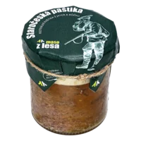 Maso z divočáka 70%, vepřové maso 30%, jedlá sůl + konzervant E250, směs koření, česnek, dextróza
